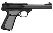 Browning's Buck Mark rimfire pistol leads the industry in quality, reliability, accuracy and variety. It is constructed of a solid piece of aircraft-grade 7075 aluminum alloy, and then CNC machined to exacting tolerances. The crisp single-action trigger, hand reamed chamber, target crowned barrel and finely adjustable target sights mean the Buck Mark comes ready for fun straight from the box. Its slide features built-in recess and raised side panels for better grip along with a manual slide release. The Buck Mark utilizes a Pro-Target rear sight and a manual thumb safety.