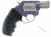 This 22 Magnum model has a lavender frame finish and stainless barrel and cylinder with full-size black rubber grip.