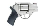 The Rhino is the most innovative development in revolver technology in decades. It fires from the bottom of the cylinder rather than the top which dramatically reduces muzzle rise and recoil felt by lowering the axis of the bore almost to the palm of the shooters hand. An aluminum alloy frame and barrel shroud makes the Rhino lightweight and easy to carry. The snag resistant "hammer" is actually a cocking device because of the Rhino's innovative completely enclosed firing mechanism which can be fired either single or double action. A cocked indicator is clearly visible to indicate the internal hammer status. Another innovation is the hexagonal cylinder which keeps the revolver's width to a minimum. Included is a leather holster, 3 moon clips, and a removal tool.