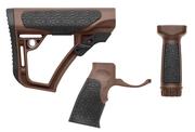 Daniel Defense's adjustable buttstock is constructed of a proprietary blend of glass infused polymers and finished off with soft touch rubber overmolding in strategic points. The buttstock is precision formed for mil-spec receiver extensions to have very little forward or lateral play that is so common in many other buttstocks. This eliminates the need for a tensioning device or friction lock. The buttstock can be run with one of two included buttpads or without any buttpad at all to custom fit the rifle to whatever gear the operator must wear. Its buttpads come in two sizes: a thicker convex shape (0.8"), and a thinner concave shape (0.5"); designed to keep from snagging when shouldering the rifle. Limited rotation QD swivel attachment points are integrated on both sides of the buttstock for ambidextrous sling connection.