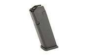 This 9mm Glock magazine is constructed of polymer with a black finish. This model has a 17-round capacity and is compatible with Glock models 17 and 34.