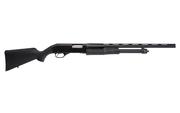 The Stevens 320 Field Grade Compact pump shotgun is chambered in 20 gauge with a 5+1 capacity. It has a 22" carbon steel barrel and black synthetic stock. The receiver and barrel have a black finish.