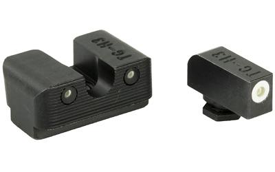 TruGlo's Tritium night sights transition from white dot sights during the daylight, to glowing green dots in the dark - no batteries or light exposure required. Assembled in the USA with quality Swiss Tritium for maximum brightness, these sights utilize CNC-machined steel construction with a snag-resistant design fitting standard holsters, and Truglo's Fortress Finish permanent protective coating for maximum protection.